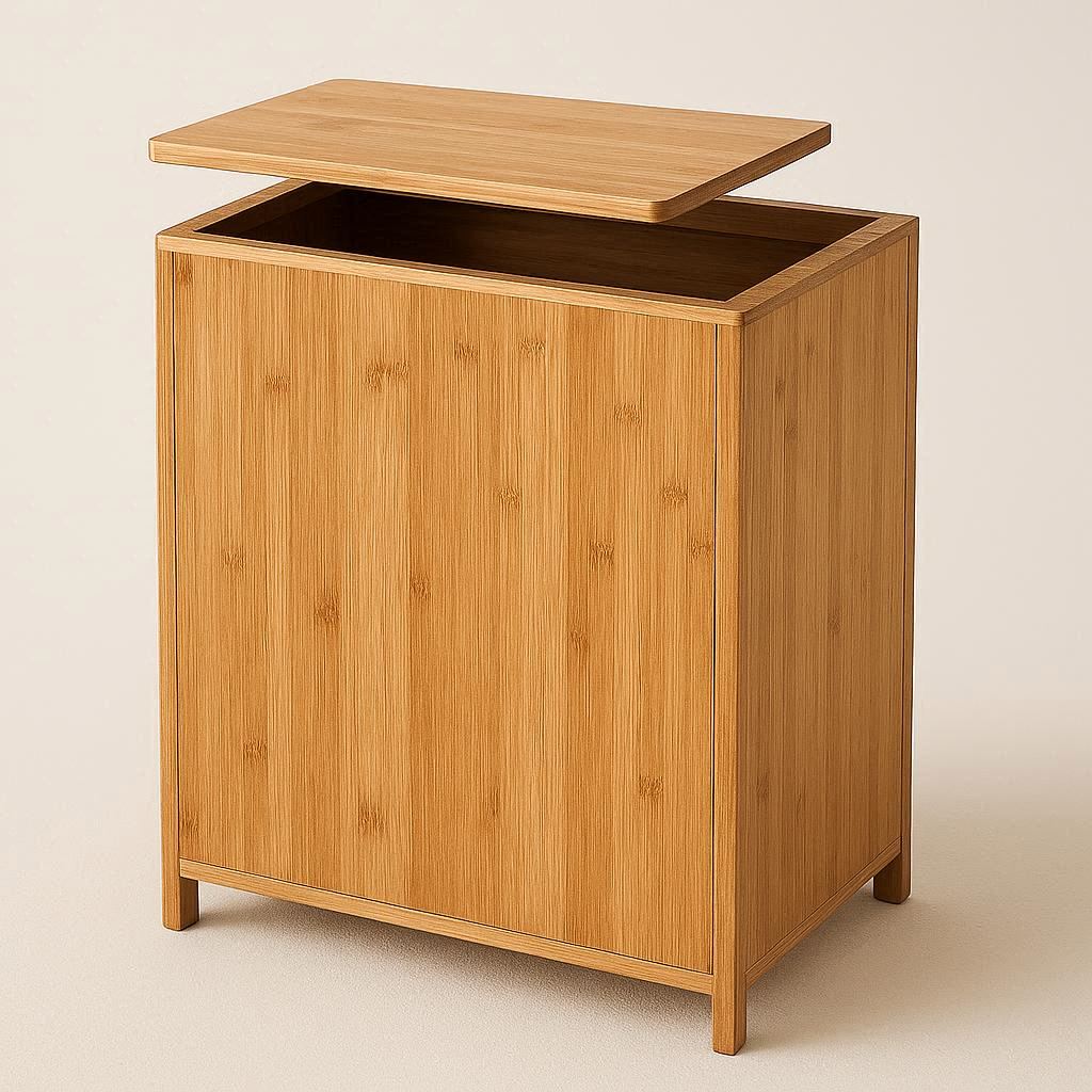 Made from recycled bamboo, this eco-friendly cabinet offers a natural wood grain finish. Features a removable top panel for quick access and a minimalist design that reduces clutter.