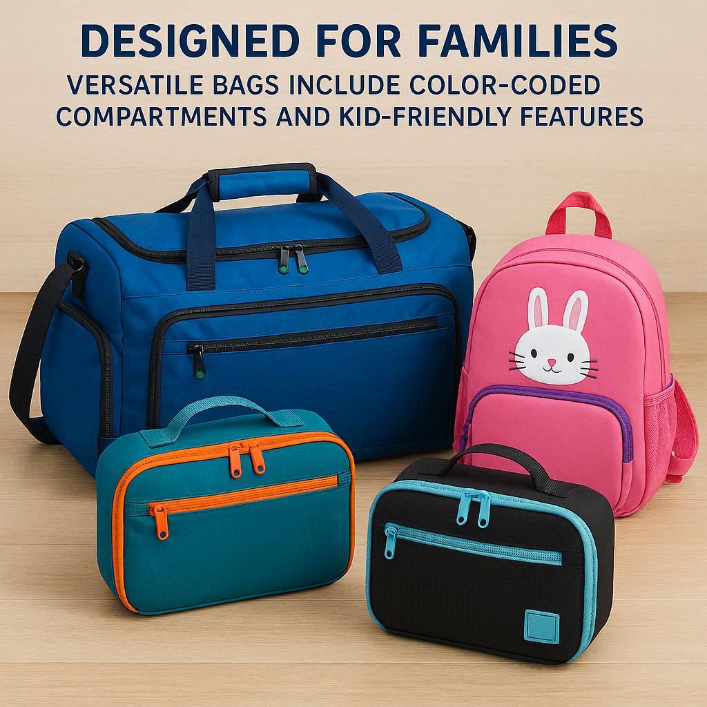 Designed for families, these versatile bags include color-coded compartments and kid-friendly features. Durable and easy to clean, promoting shared travel organization with minimal hassle.